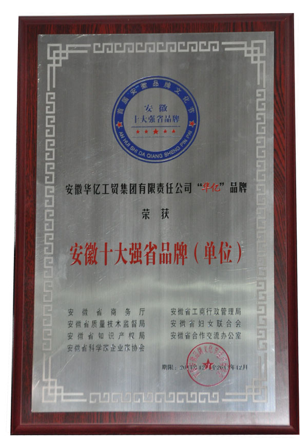 “華億”品牌榮獲“安徽十大強(qiáng)省品牌”稱號(hào)