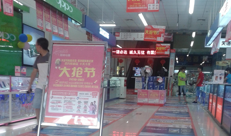 結束采訪,已是燈火闌珊,華億國際購物中心內燈火仍然通明,工作人員還在有條不紊的忙碌著,琳瑯的商品熠熠生光,門口停著一輛貨車,工人們把成箱的IPAD,一輛輛電動車送進商場,顯然,10天10夜的大搶節,華億國際已經準備充分。商場外的宣傳欄旁不時還有路人駐足觀看的身影,也許他們此時的心情和記者一樣,期待著大搶節帶來驚喜,讓我們的生活更加精彩,讓我們這座城市更加繁華。