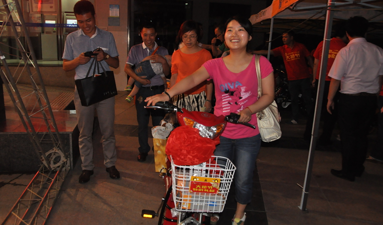 凌晨12點12分,久等了的顧客們,終于領(lǐng)到了心儀的IPADmini、電動車。