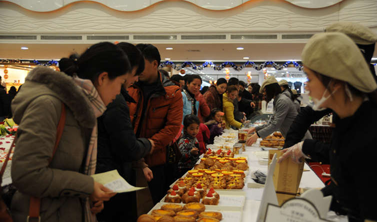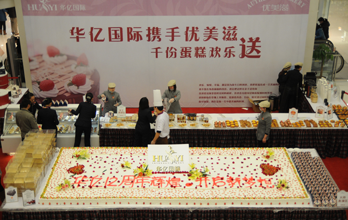 為了答謝廣大江城市民長期以來的支持,今年店慶特別策劃了“巨型蛋糕千人分享”活動。在華億國際B座3樓中庭,一塊寬3米,長7米的巨型蛋糕和一塊高2.8米12層的慶典蛋糕,引來了消費者的一片驚嘆。一位顧客,邊吃蛋糕,邊驚嘆,“能吃到蕪湖史上最大的蛋糕,簡直太幸運了”。此外,數十個品種、千余盒糕點,以及千余杯精品飲料,滿足了不同顧客的需求。在工作人員的指引下,顧客排隊有序選取可口的糕點,大家爭相留影,通過微信微博和朋友分享,臉上洋溢著甜蜜的笑容,活動現場成為一片喜悅的海洋。