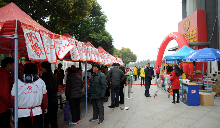 1月16日、22日,華億生活超市長(zhǎng)江長(zhǎng)店、融匯錦江店相繼超市門前廣場(chǎng)舉辦了開(kāi)業(yè)一周年慶典活動(dòng)。活動(dòng)現(xiàn)場(chǎng),年貨大禮包、蒙城黃牛肉、南陵黑豬肉、東北大米等特色定制商品深受社區(qū)居民歡迎。