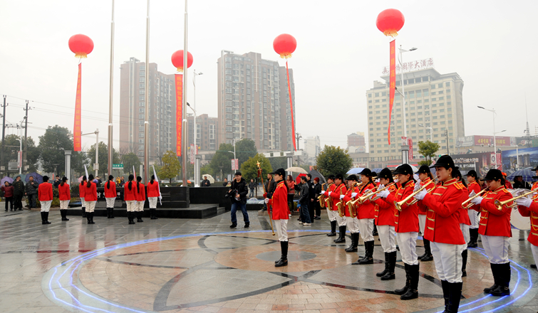 春節(jié)前夕,繁昌縣城呈現(xiàn)出一派喜慶祥和的節(jié)日氣氛。上午10時(shí),繁昌華億廣場(chǎng)舉行了簡(jiǎn)短的試營(yíng)業(yè)啟動(dòng)儀式,身著整齊禮服的華億女子升旗隊(duì)正步走向廣場(chǎng),英姿颯爽,讓全場(chǎng)消費(fèi)者為之振奮。在華億軍樂(lè)隊(duì)演奏的莊嚴(yán)《國(guó)歌》和《華億之歌》歌聲中,五星紅旗和華億集團(tuán)司旗緩緩升起,華億員工和全場(chǎng)市民紛紛行注目禮,現(xiàn)場(chǎng)不少消費(fèi)者對(duì)華億集團(tuán)十五年如一日的升旗文化活動(dòng)表示贊賞。